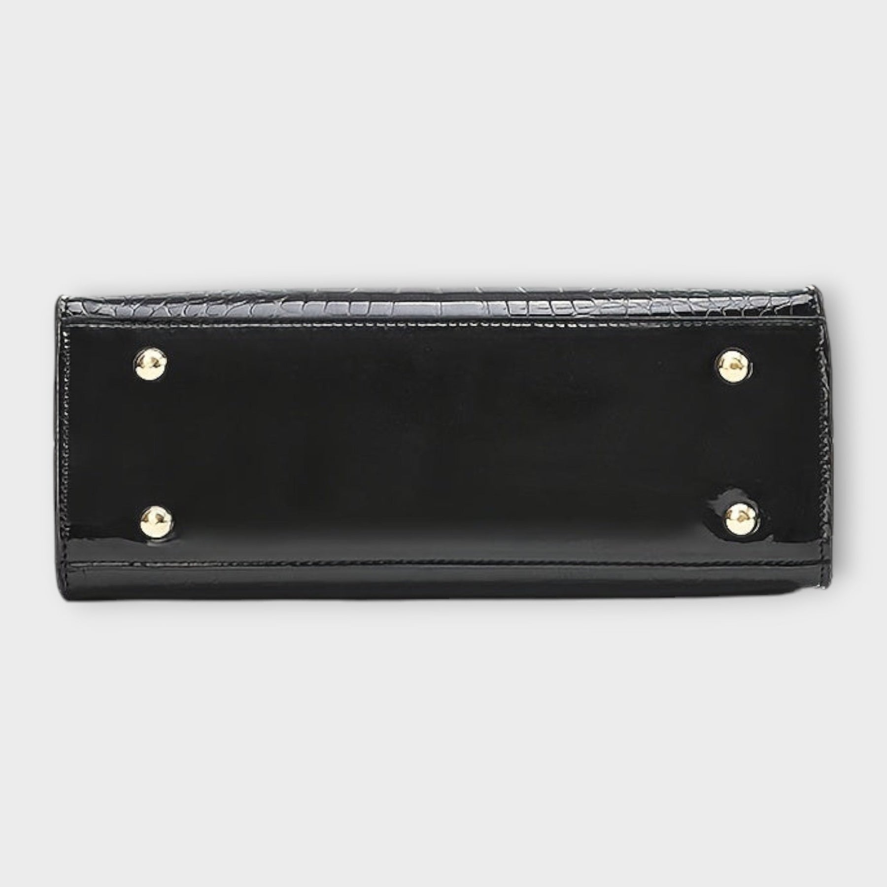 Step out in style with the Madison - Glossy Crocodile Pattern Handbag, the perfect blend of luxury and practicality for the modern woman.